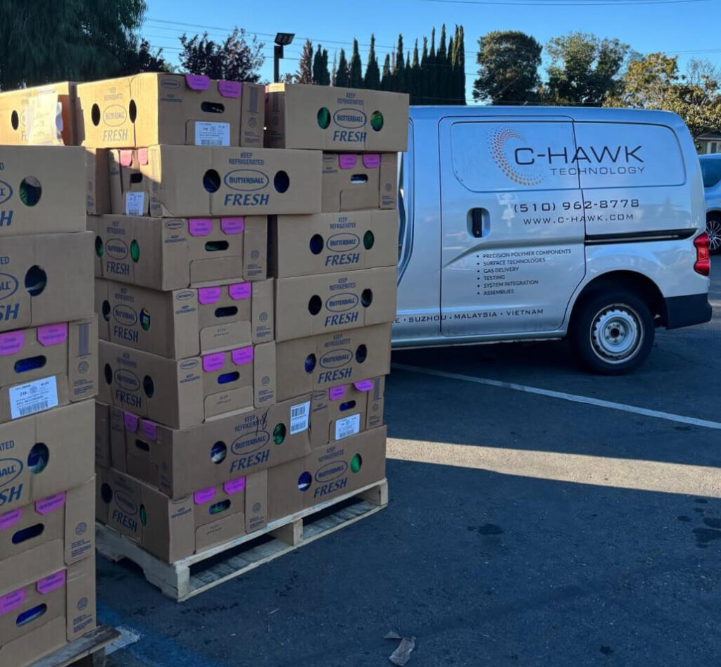 In the spirit of giving thanks, our team in Hayward, California recently spent the day volunteering at South Hayward Parish, which provides much-needed food, resources, supplies and shelter to the local unhoused community. C-Hawk staff rolled up their sleeves to deliver 200 turkeys to the parish—a donation that will help families in need enjoy their own holiday feast.